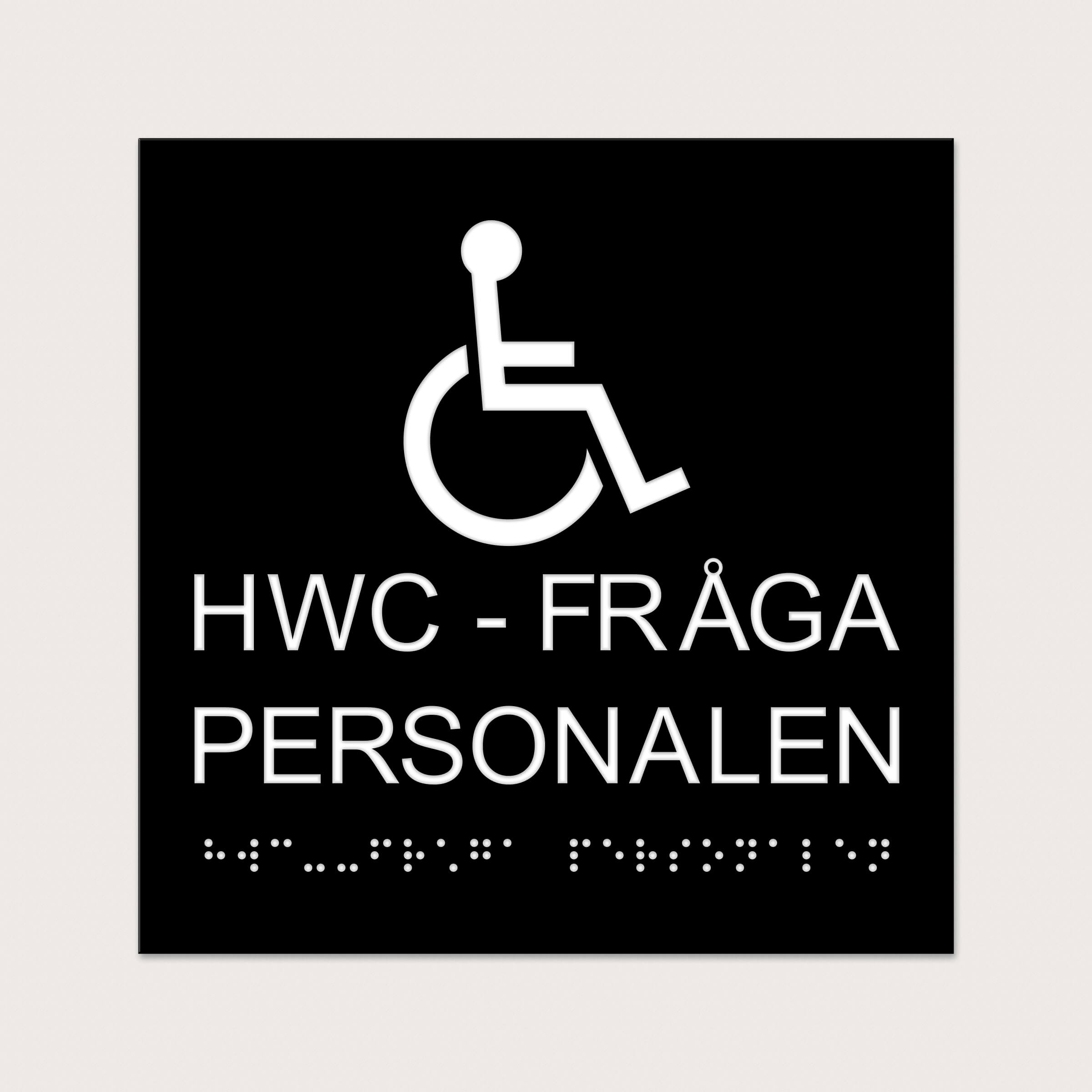 Taktilt Piktogram med text HWC Fråga Personalen