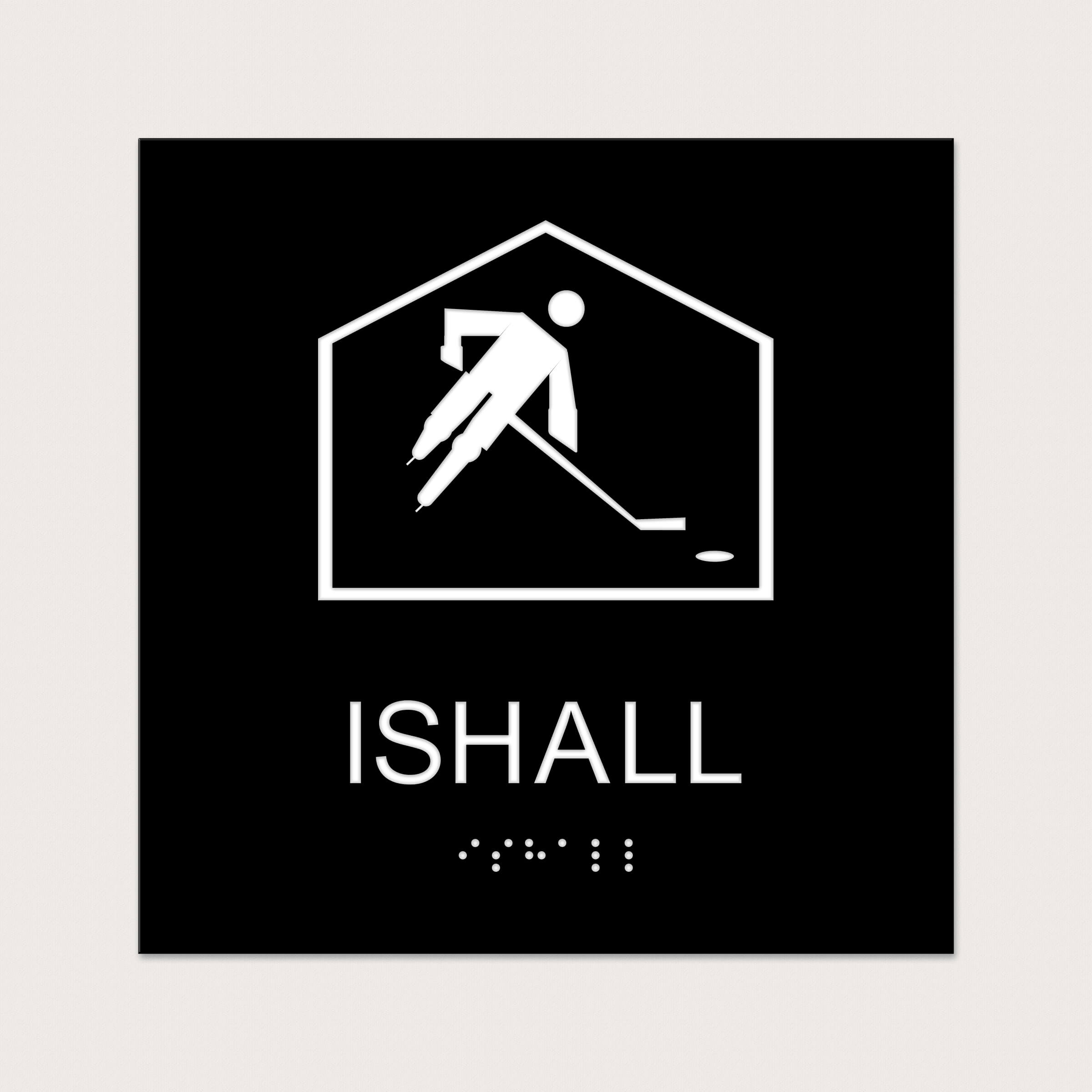 En taktil skylt att ha utanför Ishallar och arenor för att göra det tydligt och lätt för besökarna att hitta.