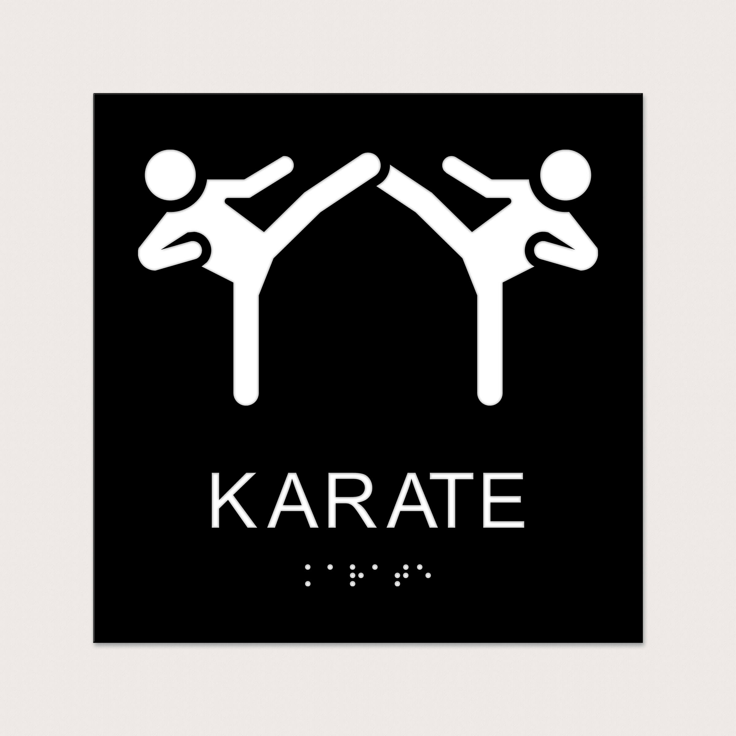 En taktil skylt som kan passa bra in på idrottsanläggningar och andra träningslokaler där man utövar karate. Vilket gör det lätt för besökarna att hitta rätt.