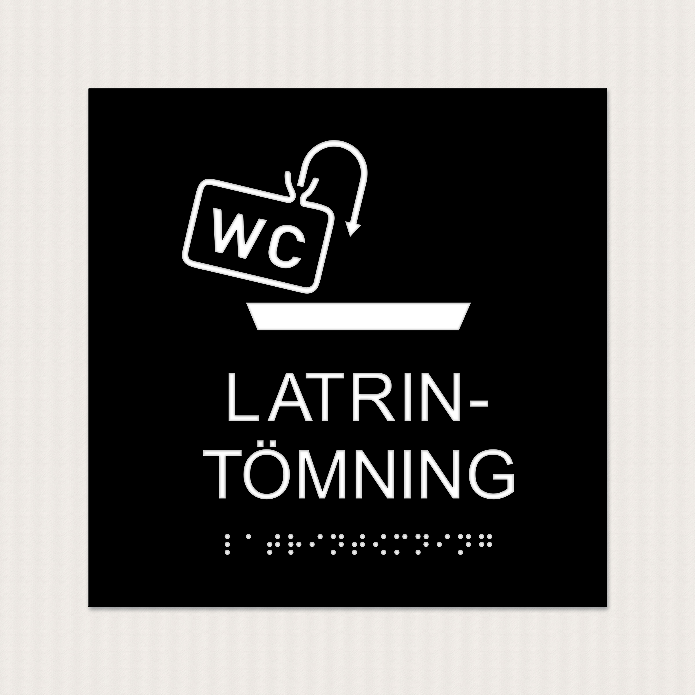 En taktil skylt för latrintömning att sätta i vid en camping eller på en rastplats.