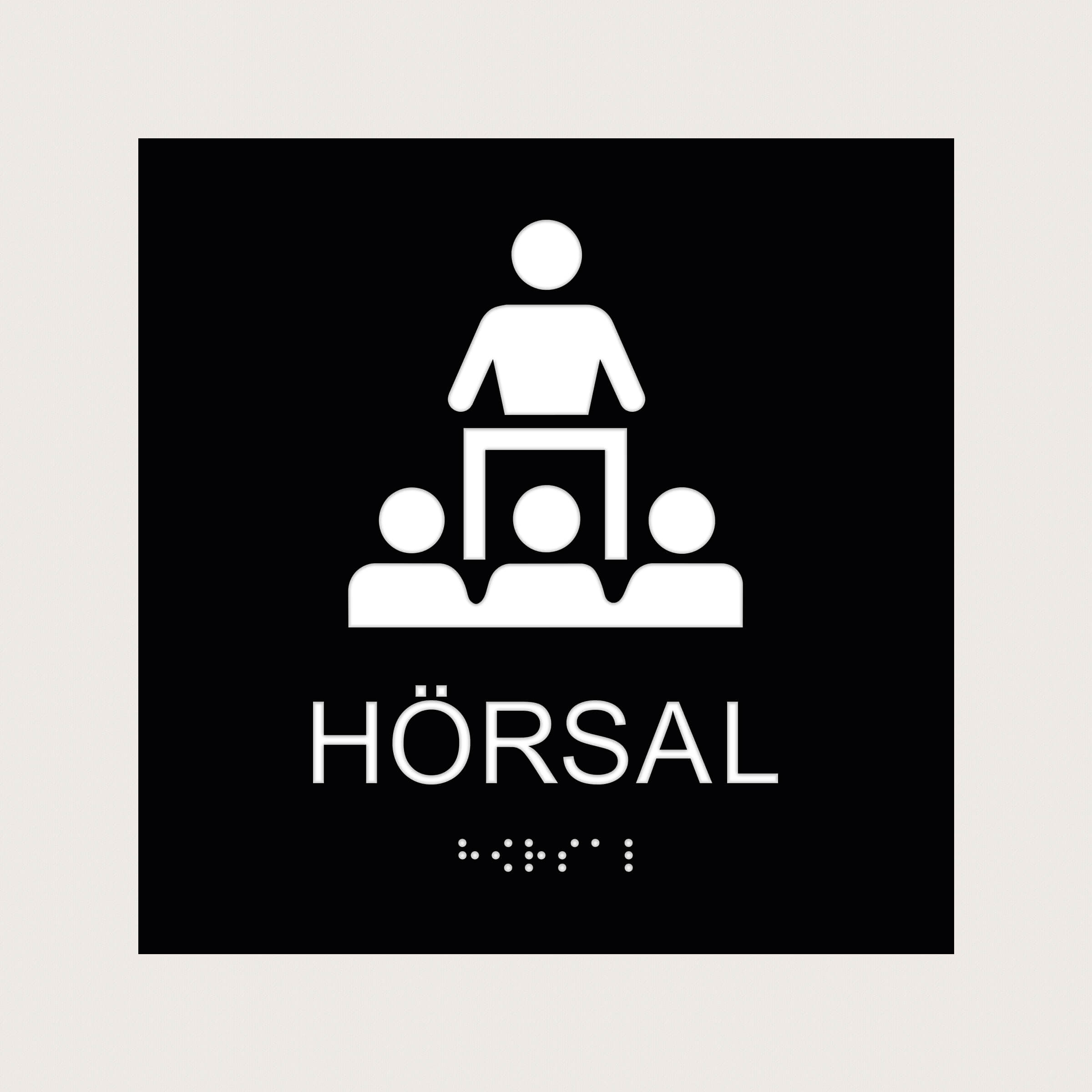 Ett taktilt piktogram att fästa utanför en Hörsal så att den är lätt att hitta. Välj mellan olika färger och storlekar.