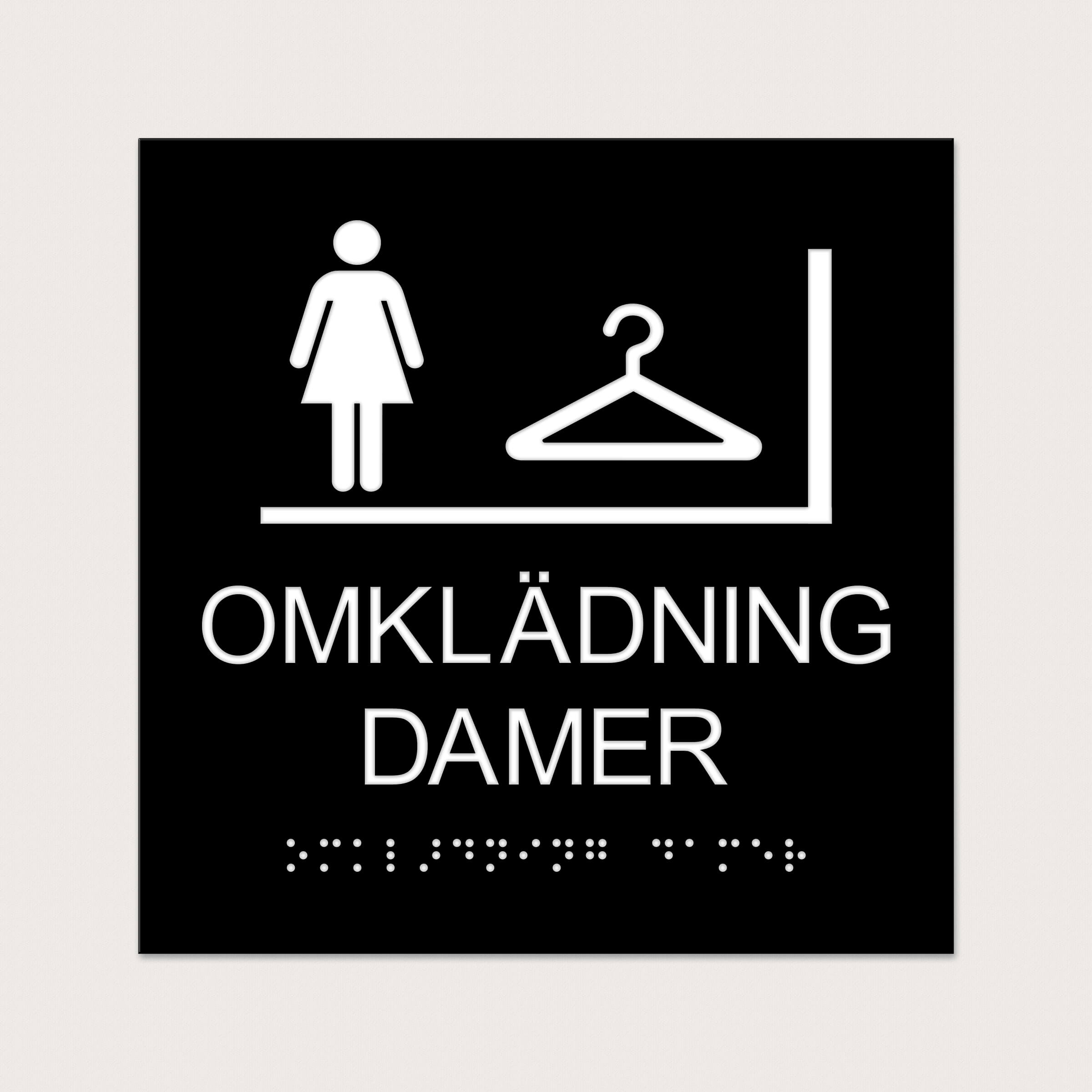 En taktil skylt som visar att det är damernas omklädningsrum.