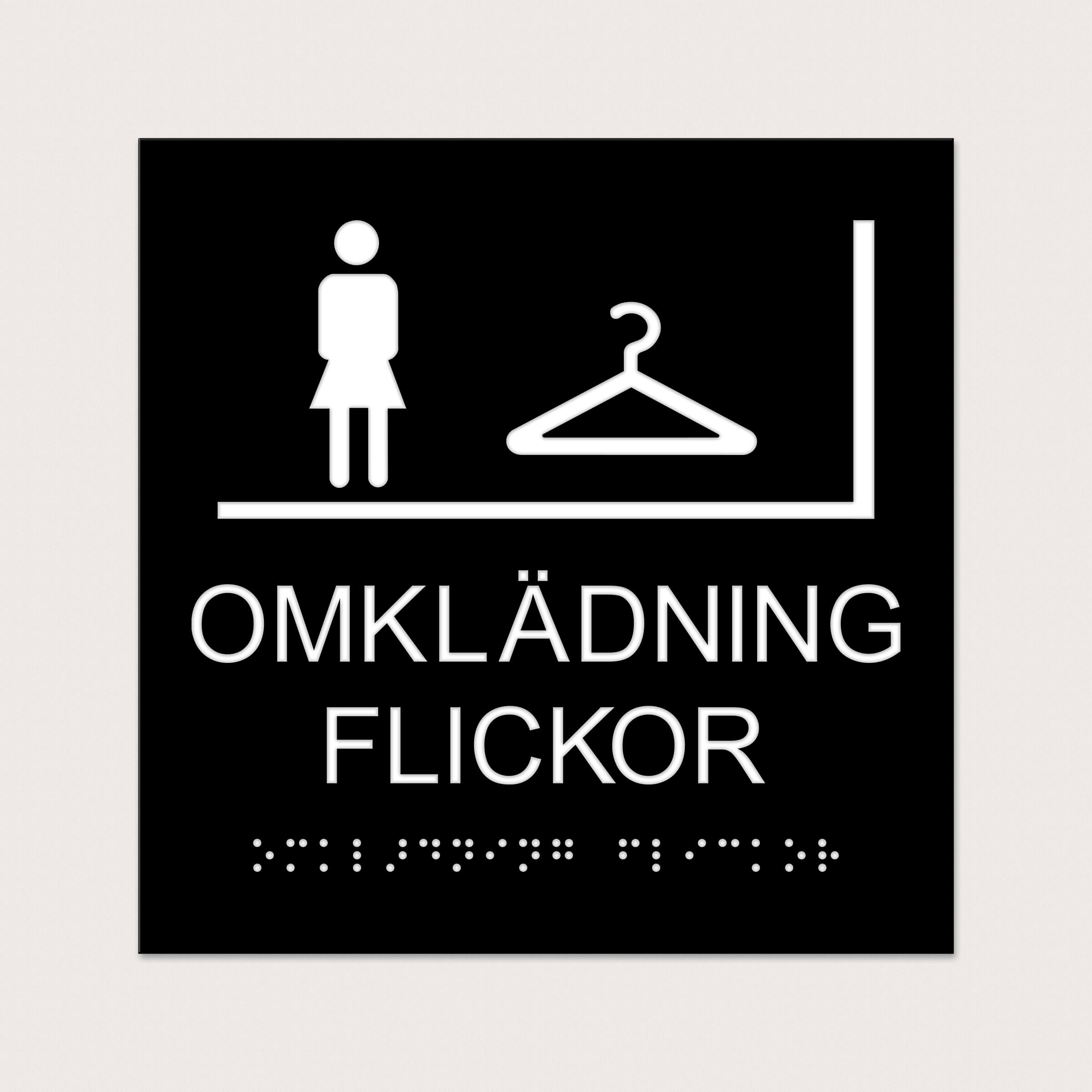 Ett taktilt piktogram med text att ha vid Flickornas Omklädningsrum. Välj mellan olika färger.