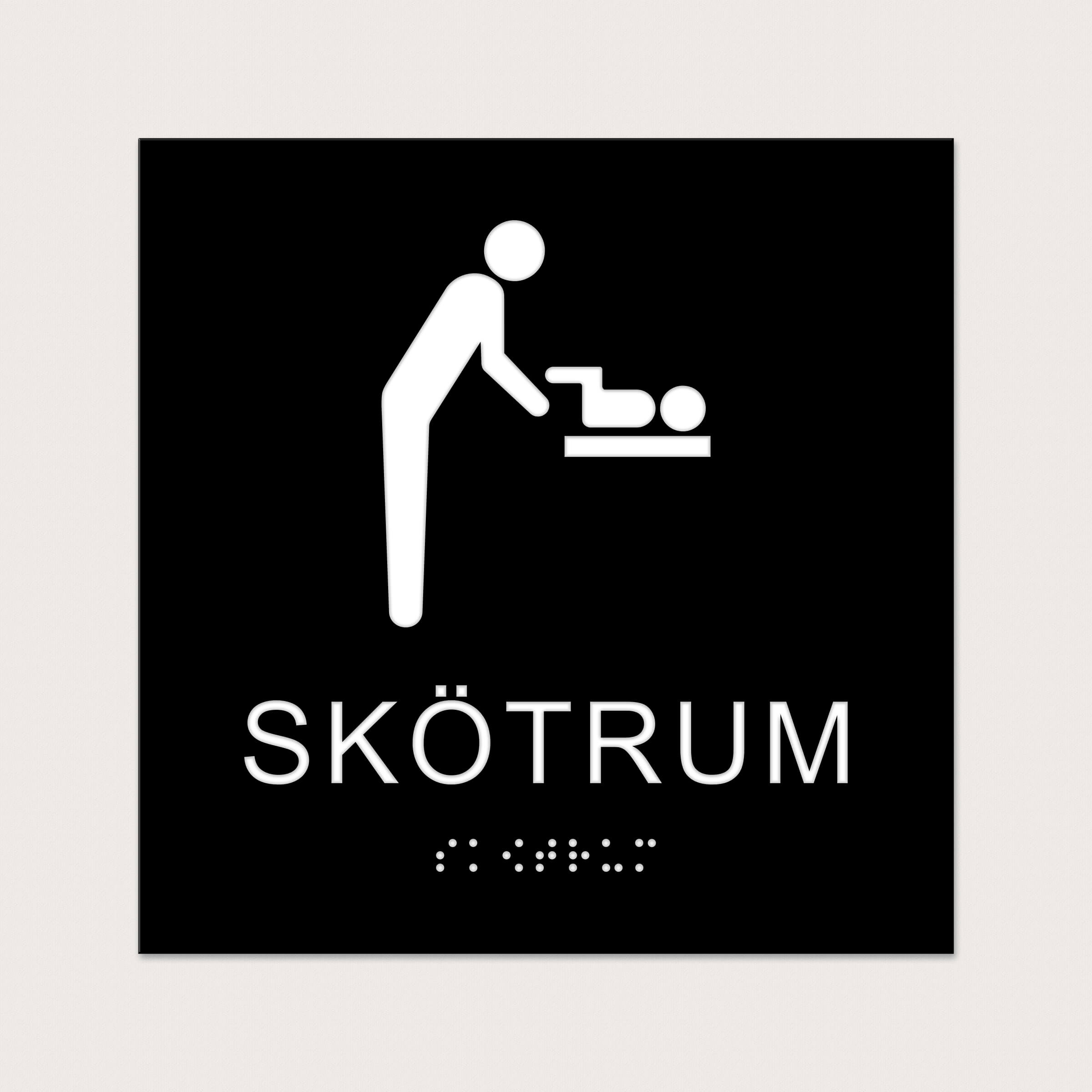 Ett taktilt piktogram med text och punktskrift att sätta upp utanför ett skötrum. Välj mellan olika färger och storlekar.