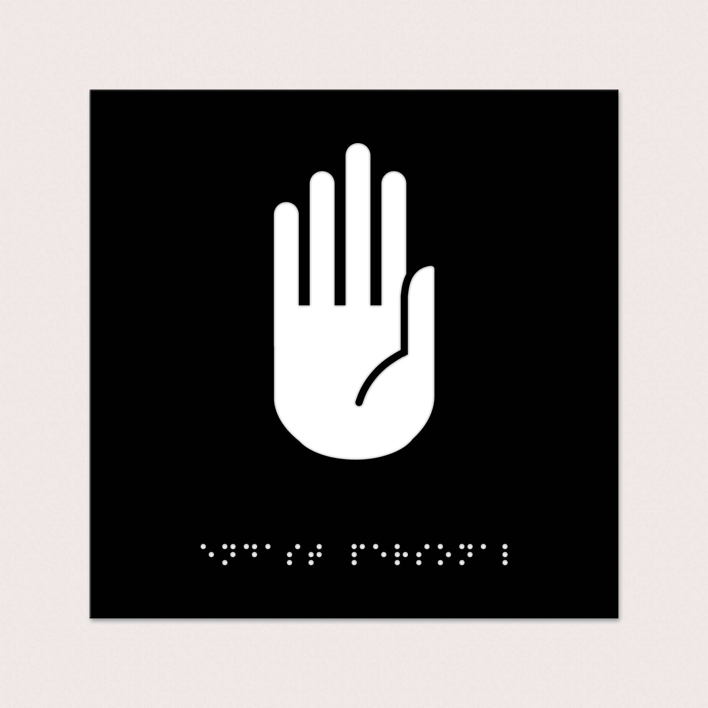 En taktil endast personal skylt som kan användas i butiker eller andra offentliga byggnader.