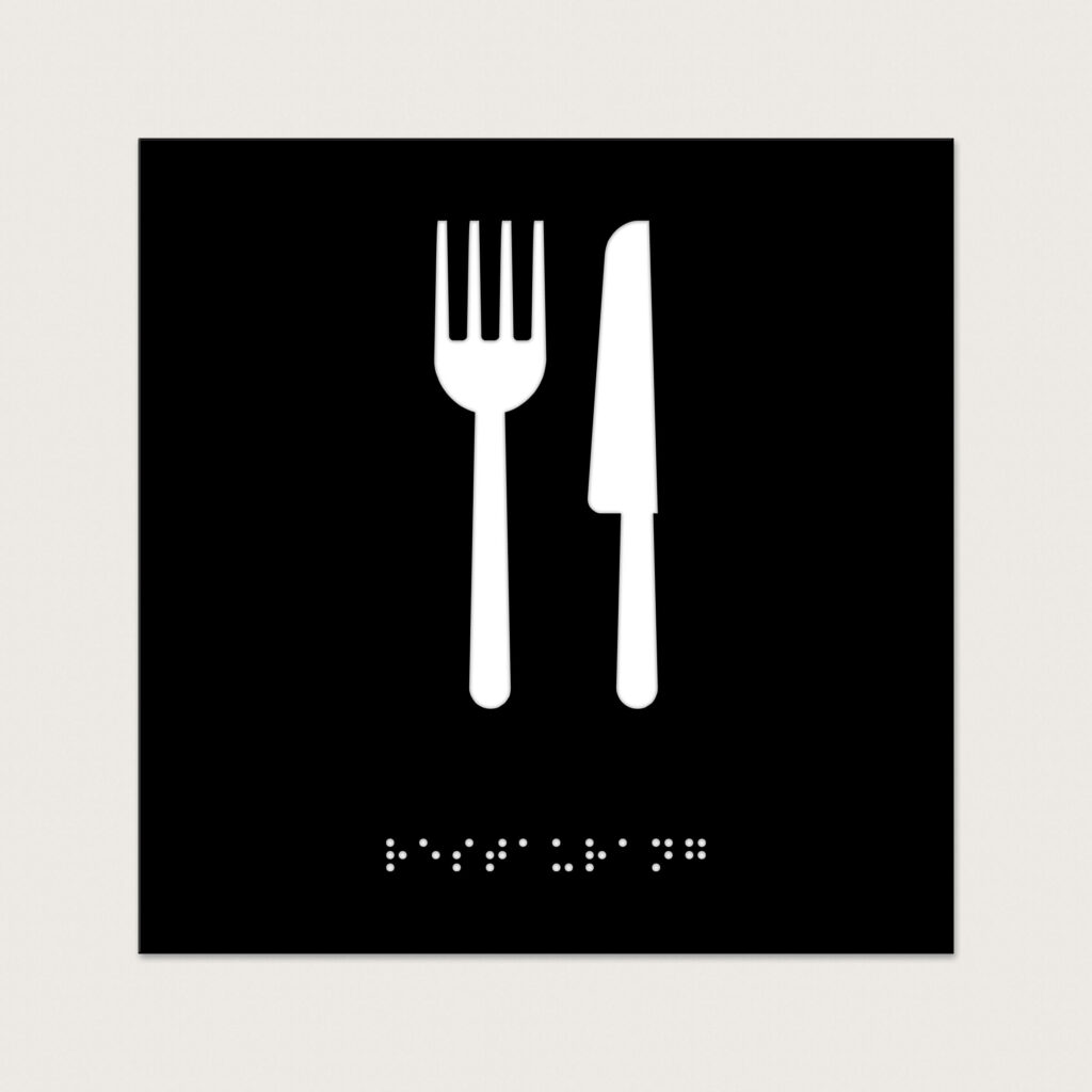 En Taktil skylt som kan användas till restauranger eller till verksamheter som har restaurangavdelningar, t ex större kontorsbyggnader.