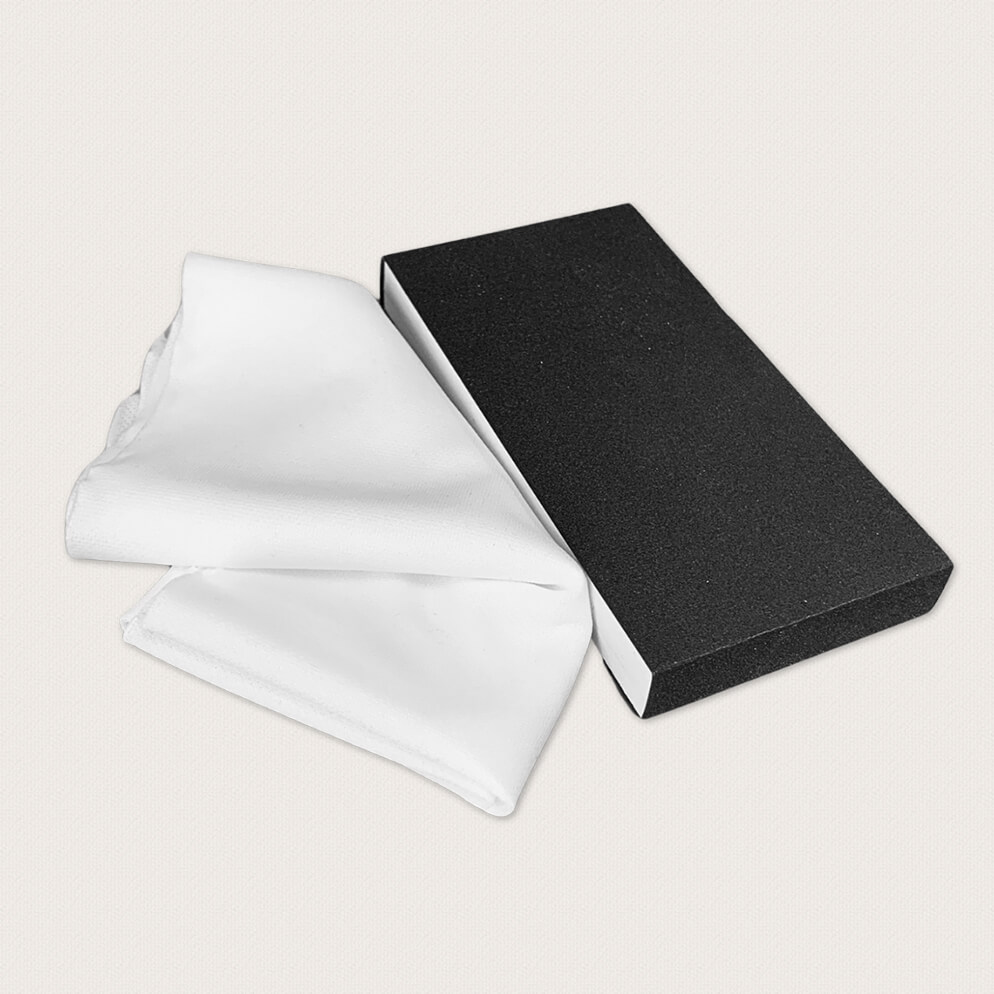 Ett slipkit för att slipa och återskapa en fin lyster. Ge en fin borstad yta, medföljer en slipkloss och en putsduk.