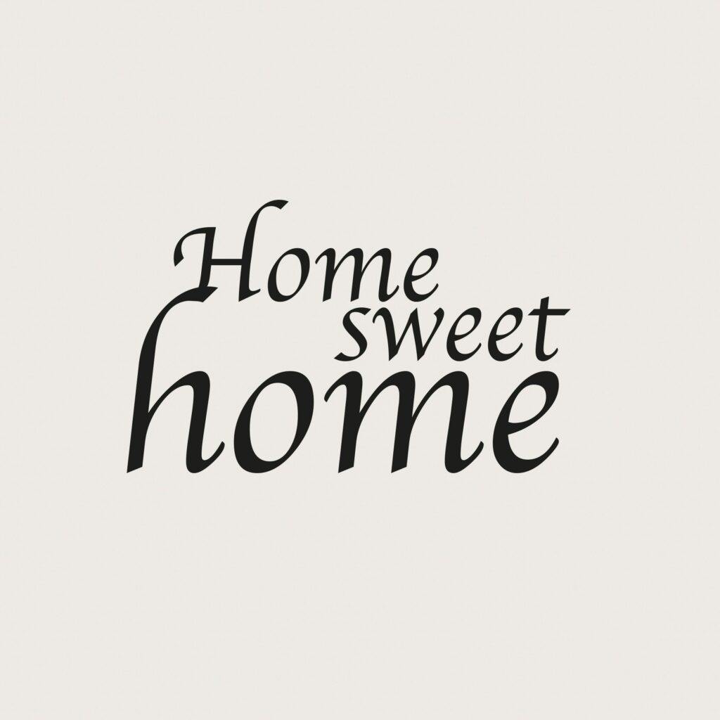 Väggtext Home sweet home i vinyl att sätta på er vägg i vardagsrummet eller sovrummet.